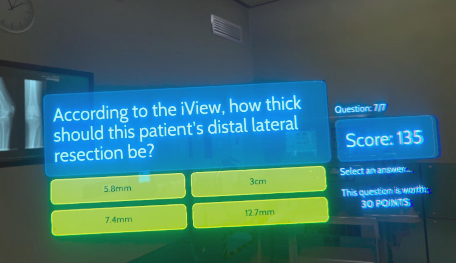 Frame Interactive was contracted by Varises to create a virtual reality surgical training and practice/reference tool. The project was designed to be a proof of concept for a larger platform, using the Conformis custom knee replacement procedure as an example. In the simulation, a virtual avatar of Dr. Bryan Huber, a real life expert on this procedure, guides you through an interactive knee replacement from start to finish, teaching you about the steps, tools, and important details.The final product takes the user through a section of the surgery, where they are placing jigs on the knee, drilling holes, resecting bone, and more. For many of the steps, the user has the option watch Dr. Huber provide additional explanations, and they also sometimes have an option to watch a video about the current step. At the end of the procedure, there is a scored assessment mode (not featured in the video on this page), which tests the user's retention by asking them to identify jigs and answer multiple choice quiz questions.
